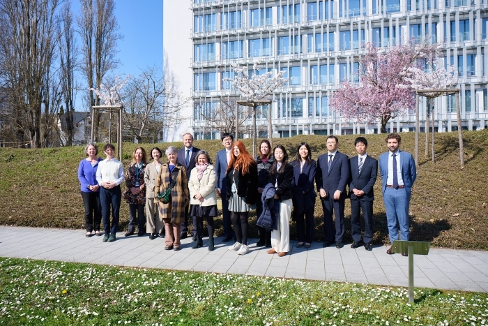 欧州評議会の桜の前での記念撮影(2026年3月18日)