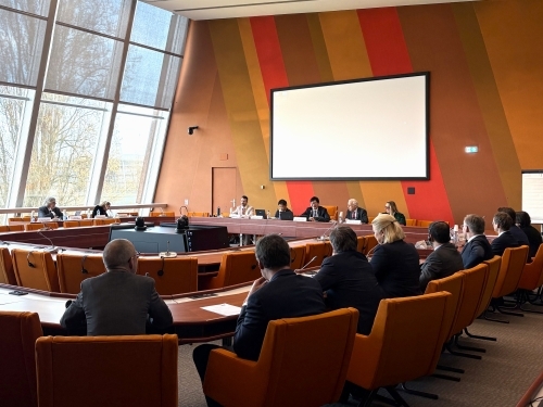 3月13日、日本の欧州評議会オブザーバー国就任30周年を記念して、ベニス委員会と共同してシンポジウムを開催しました。同シンポジウムには、ベニス委員である曽我部真裕京都大学大学院法学研究科教授が参加し、「日本における国際人権法」について基調講演が行われました。また、同教授を含むベニス委員等の約10名の専門家によるディスカッションも行われました。同会合は日本と欧州評議会の関係や日本における国際人権法等についての理解を促す有益な機会となりました。同会合では、オブザーバー就任30周年を記念して作成したリーフレットも配布しました。